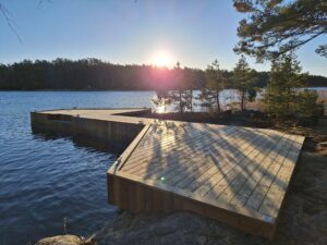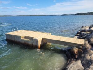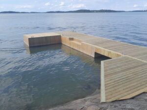 Kiinteä arkkulaituri on saaristosta tuttu laiturimalli, joka tarjoaa tukevan vaihtoehdon erityisesti avonaisille vesialueille. Laituri koostuu hirsirungosta, louhetäytöstä, paaluista sekä reuna- ja kansilankutuksesta. Kiviarkkulaituri ankkuroidaan merenpohjaan käyttäen joko puupaaluja tai porattavia teräspaaluja riippuen pohjan koostumuksesta. Ankkuroinnin jälkeen laiturin runko kiinnitetään tukevasti paaluihin, täytetään kivellä, ja tämän jälkeen laituri on valmis kansitöihin. Oikein suunniteltu ja toteutettu arkkulaituri kestää isältä pojalle jopa kovissa olosuhteissa. Tutustu laitureihimme kuvagalleria-sivulla.